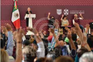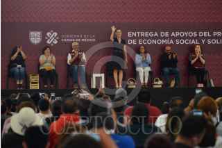 CIUDAD DE MÉXICO, 02JUNIO2022.- Claudia Sheinbaum, jefa de Gobierno, encabezó la entrega de apoyos del programa de economía social y solidaria a cooperativas de la capital. FOTO: MARIO JASSO/CUARTOSCURO.COM