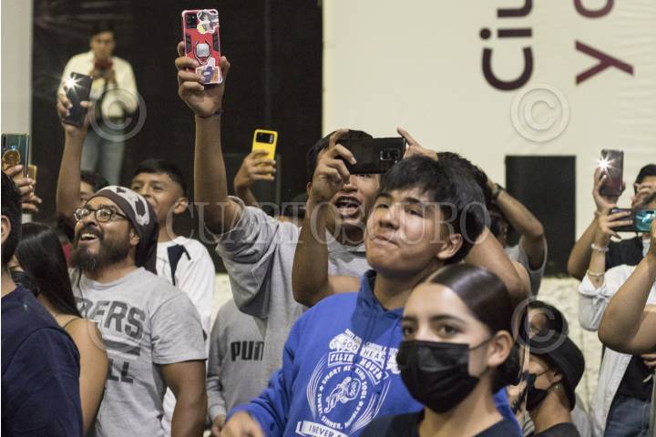 GUADALUPE, ZACATECAS, 03JUNIO2022.- Julio César Chávez, ex campeón mundial, visitó la ciudad para charlar con los guadalupenses y contar su historia de triunfo en el pugilismo mundial. El encuentro del campeón con jóvenes de escuelas del municipio, realizado en el auditorio municipal, formó parte de las actividades, que Gobierno del Estado realiza para invitar e incentivar a los jóvenes la practica de algún deporte y así ayudar a la reconstrucción social en el estado. Esta noche, se realizará una exhibición de box entre el "Travieso" Arce y el "Terrible" Morales. FOTO: ADOLFO VLADIMIR /CUARTOSCURO.COM