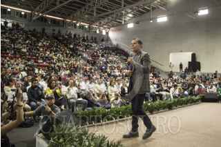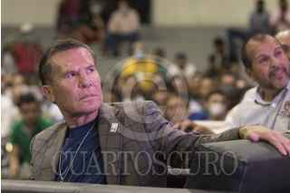 GUADALUPE, ZACATECAS, 03JUNIO2022.- Julio César Chávez, ex campeón mundial, visitó la ciudad para charlar con los guadalupenses y contar su historia de triunfo en el pugilismo mundial. El encuentro del campeón con jóvenes de escuelas del municipio, realizado en el auditorio municipal, formó parte de las actividades, que Gobierno del Estado realiza para invitar e incentivar a los jóvenes la practica de algún deporte y así ayudar a la reconstrucción social en el estado. Esta noche, se realizará una exhibición de box entre el "Travieso" Arce y el "Terrible" Morales. FOTO: ADOLFO VLADIMIR /CUARTOSCURO.COM