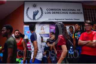 TAPACHULA, CHIAPAS. 03JUNIO2022.- Migrantes se concentraron en el parque bicentenario para caminar y dejar documentos a las oficinas de CNDH. Un aproximado de 2000 mil migrantes de distintas nacionalidades marcharon para entregar documentos a las oficinas Comisión Nacional de los Derechos Humanos para pedir medidas precautorias, ya que el día lunes pretenden salir en caravana de Tapachula. FOTO: DAMIÁN SÁNCHEZ/CUARTOSCURO.COM