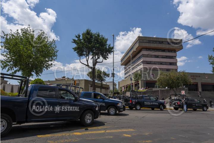 TOLUCA, ESTADO DE MÉXICO, 03JUNIO2022.- Fuerte operativo de seguridad se registra en el edificio de la Fiscalía General de Justicia del Estado de México por parte de elementos del Ejército, Guardia Nacional, Policia Estatal y Municipal así como ministeriales, después de realizar un operativo en la zona de la Terminal de Autobuses de Toluca en donde se dio la detención de al menos 8 personas que presuntamente se dedicaban al robó y venta de celulares robados. FOTO: CRISANTA ESPINOSA AGUILAR /CUARTOSCURO.COM