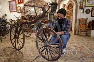 PUEBLA, PUEBLA, 3JUNIO2022.- El Museo de la Bicicleta en Puebla, creado en el 2014, es el único espacio en México y en América Latina dedicado al transporte de dos ruedas. Hoy 3 de junio se celebra el Día Mundial de la Bicicleta y el director del museo, Domenikos Ruiz, invita a conocer uno de los más grandes inventos de la historia. FOTO: MIREYA NOVO/ CUARTOSCURO.COM