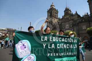 CIUDAD DE MÉXICO, 04JUNIO2022. Organizaciones estudiantiles encabezadas por la Asamblea Estudiantil del CIDE marcharon del Palacio de Bellas Artes al zócalo capitalino en defensa de la educación digna y la ciencia libre. FOTO: EDGAR NEGRETE/CUARTOSCURO.COM