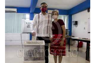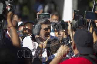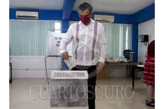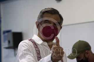 CIUDAD VICTORIA, TAMAULIPAS, 05JUNIO2022.- El candidato morenista a la gubernatura por Tamaulipas; Américo Villarreal, acude a la UPN de ciudad Victoria, a emitir su voto durante la jornada electoral en el estado. FOTO: GABRIELA PÉREZ MONTIEL / CUARTOSCURO.COM