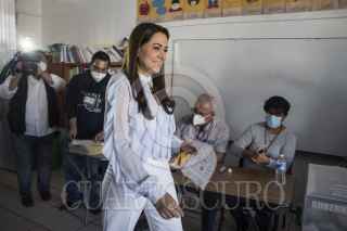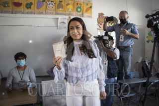 AGUASCALIENTES, AGUASCALIENTES, 05JUNIO2022.- Teresa Jiménez, candidata a la gubernatura por la coalición "Va por Aguascalientes", entre los partidos PAN, PRI y PRD, ejerció su voto en la casilla instalada en la escuela primaria Jesús Reyes Heroles. FOTO: ADOLFO VLADIMIR /CUARTOSCURO.COM