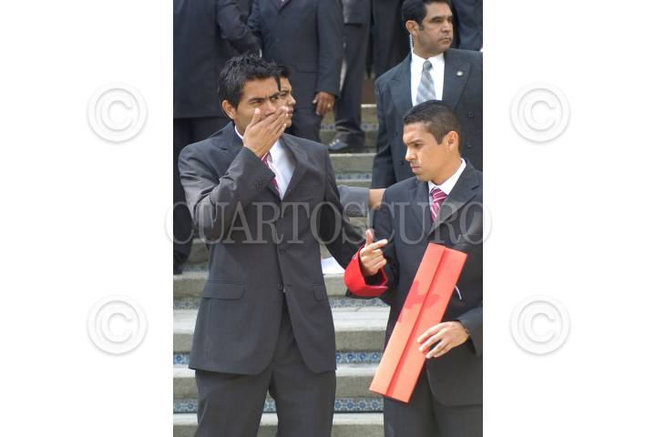 MÉXICO, D.F. 03ENERO2007.- Felipe Calderón Hinojosa, primer mandatario mexicano, Oswaldo Sánchez, exjugador de Chivas del Guadalajara y Ramón Morales, jugador de las Chivas del Guadalajara, durante la fotografía oficial del equipo campeón del Torneo de Apertura 2006 a la Residencia Oficial de Los Pinos. FOTO: IVÁN STEPHENS/CUARTOSCURO.COM