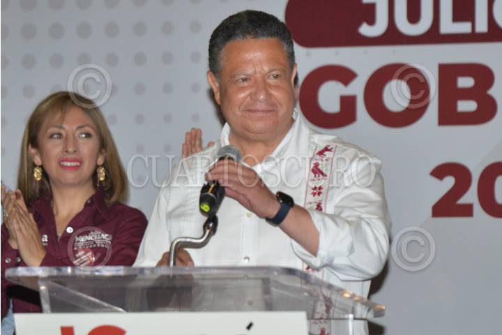 PACHUCA, HIDALGO, 05JUNIO2022.- Julio Menchaca, candidato de la coalición "Juntos Hacemos Historia" (Morena, Partido del Trabajo y Nueva Alianza), ofreció una conferencia de prensa en la que se nombró ganador de las elecciones a gobernador del Hidalgo. FOTO: MARIO JASSO /CUARTOSCURO.COM