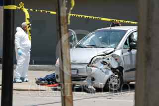 VILLAGRÁN, GUANAJUATO, 06JUNIO2022.- Florencio Lara, hijo Juan Lara Mendoza (Alcalde de Villagrán) fue asesinado a balazos en el bulevar Luis Donaldo Colosio. Florencio viajaba con su pareja sentimental quien resultó herida de gravedad. Los asesinos viajaban en una camioneta y le cerraron el paso, con armas largas dispararon en varias ocasiones. FOTO<. DIEGO COSTA/CUARTOSCURO.COM