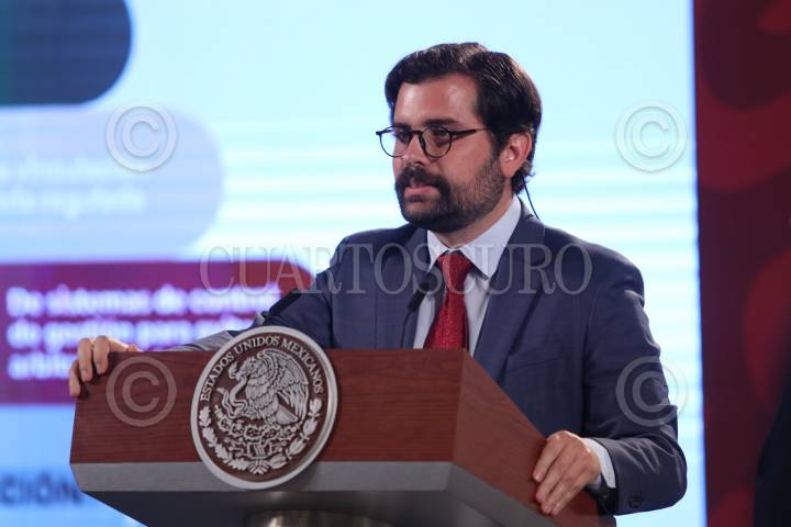 CIUDAD DE MÉXICO, 07JUNIO2022.- Andrés Manuel López Obrador, presidente de México acompañado de Jorge Alcocer Varela, secretario de Salud; Hugo López-Gatell Ramírez, subsecretario de Prevención y Promoción de la Salud; Zoé Robledo Aburto, director general del Instituto Nacional del Seguro Social (IMSS); Alejandro Svarch Pérez, titular de la Comisión Federal para la Protección contra Riesgos Sanitarios (Cofepris) y Jesus Ramírez Cuevas, coordinador general de Comunicación Social y vocero de Presidencia durante conferencia de prensa en Palacio Nacional. FOTO: ANDREA MURCIA /CUARTOSCURO.COM