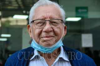 CIUDAD DE MÉXICO. 07JUNIO2022.- Don Arturo Fernández de 86 años acudió a la Fiscalía de la Capital a ratificar su denuncia de despojo de vivienda, que se localiza en la alcaldía de Azcapotzalco. Lo acompaña su abogado Jorge Cruz. FOTO: VICTORIA VALTIERRA/CUARTOSCURO.COM