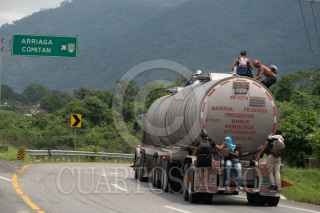 HUIXTLA, CHIAPAS, 07JUNIO2022.- La caravana migrante continúa su camino para salir del estado chiapaneco, después de recorrer 30 kilómetros desde las tres de la mañana, los migrantes pasan la tarde en un espacio público del municipio de Huixtla. Muchos migrantes lograron subir a tráileres y camionetas de redilas para adelantar su paso. FOTO: ISABEL MATEOS/CUARTOSCURO.COM