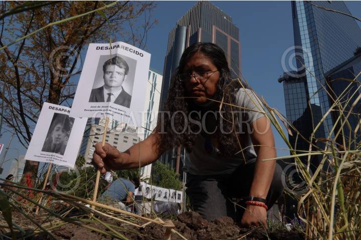 CIUDAD DE MÉXICO, 08JUNIO2022.- A un mes de que fue nombrada la Glorieta de las y los Desaparecidos, en donde se encontraba La Palma, familiares de las víctimas colocaron nuevamente fotografías de sus seres queridos y de las demás personas que han sufrido de desaparición forzada alrededor del árbol del Ahuehuete que colocaron el domingo pasado en sustitución de la Palma que retiraron debido a que tenía una plaga de un hongo. FOTO: GRACIELA LÓPEZ /CUARTOSCURO.COM