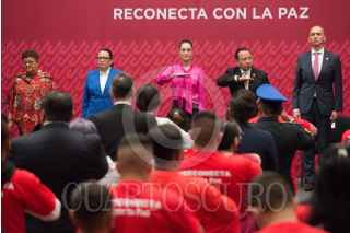 CIUDAD DE MÉXICO, 08JUNIO2022.- Claudia Sheinbaum Pardo, jefa de Gobierno, encabezó en las instalaciones del Museo de la Ciudad de México, la Segunda Ceremonia de Entrega de Reconocimientos a Personas Beneficiarias de la “Estrategia Reconecta con La Paz”. La mandataria estuvo acompañada de: Rosa Icela Rodríguez, secretaria de Seguridad y Protección Ciudadana del Gobierno de México; Ernestina Godoy Ramos, Fiscal General de Justicia de la Ciudad de México; Omar García Harfuch, secretario de Seguridad Ciudadana; Rafael Guerra Álvarez, magistrado Presidente del Poder Judicial de la Ciudad de México; Martí Batres Guadarrama, secretario de Gobierno, y Salvador Guerrero Chiprés, presidente del Consejo Ciudadano para la Seguridad y Justicia de la Ciudad de México. FOTO: MARIO JASSO/CUARTOSCURO.COM