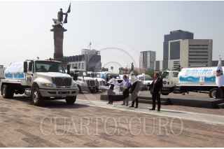 MONTERREY, NUEVO LEÓN, 08JUNIO2022.- Samuel García y el titular de la comisión de Agua y Drenaje; Ignacio Barragán, dieron el banderazo oficial para abastecer a colonias de agua a través de pipas, destinadas a las colonias del área metropolitana de Monterrey donde no llega el suministro por estar ubicadas en la periferia. FOTO: GABRIELA PÉREZ MONTIEL / CUARTOSCURO.COM