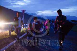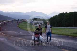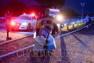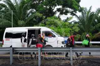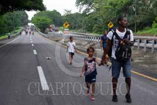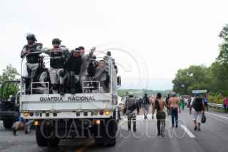 HUIXTLA, CHIAPAS, 09JUNIO2022.- Las personas migrantes que decidieron continuar en la Caravana Migrante, salieron en punto de las cinco de la mañana de este municipio rumbo al norte del país. Al menos 2000 personas integran el contingente, el resto se quedaron en el municipio para intentar tramitar el formato múltiple que les ofreció la oficina de migración. Elementos de la Guardia Nacional se mantienen expectantes de su paso. FOTO: ISABEL MATEOS/CUARTOSCURO.COM