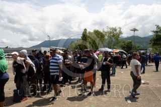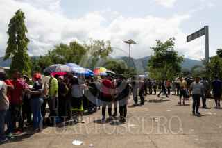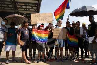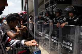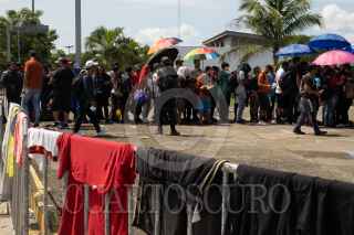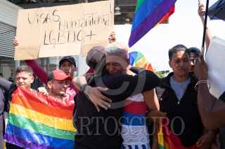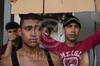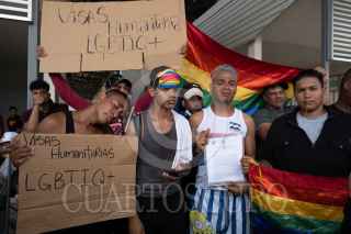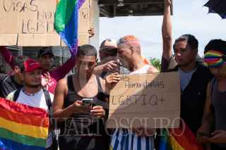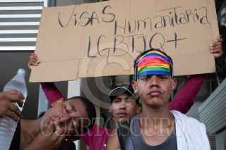 HUIXTLA, CHIAPAS, 09JUNIO2022.- Integrantes de la Caravana Migrante hicieron fila en las instalaciones de la Aduana Cerro Gordo del INM para tramitar un visa o formato que les permita transitar por el territorio nacional de manera regular, y así evitar ser extorsionados por las autoridades. Ahí migrantes de la comunidad LGBTTI se cocieron los labios ya que denunciaron discriminación por parte de las autoridades migratorias para poder obtener el permiso mencionado y exigieron un trato justo. FOTO: ISABEL MATEOS /CUARTOSCURO.COM