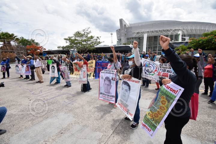 CHILPANCINGO, GUERRERO, 09JUNIO2022.- Padres y Madres de los 43 estudiantes de Ayotzinapa desaparecidos continuaron su jornada de lucha denominada «26 de septiembre no se olvida», y en el cuarto día se manifestaron frente a la Sede del Poder Ejecutivo de Guerrero, donde demandaron una reunión con la gobernadora, Evelyn Salgado Pineda. Desde el inicio del mitin reprocharon al Gobierno del Estado que a casi ocho años de la desaparición de los jóvenes no hay ningún funcionario de Guerrero preso por este caso, como el ex gobernador Ángel Aguirre Rivero y el ex Procurador, Iñaki Blanco Cabrera. También criticaron que a la fecha los ex funcionarios federales sigan prófugos de la justicia, tal es el caso de Tomás Cerón de Lucio y Jesús Murillo Karam. Frente a la Sede del Poder Ejecutivo, la señora Joaquina García, Madre del estudiante Martín Getsemaní Sánchez García, reclamó que en lo que va de la actual administración del Gobierno Estatal no se ha concretado una reunión con la gobernadora Evelyn Salgado Pineda. FOTO: DASSAEV TÉLLEZ ADAME/CUARTOSCURO.COM