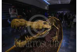 TOLUCA, ESTADO DE MÉXICO, 09JUNIO2022.- Los dinosaurios llegaron al Centro Cultural Toluca como parte de la exposición Ecos de la Extinción, a través de 27 dinosaurios robotizados, reproducciones de fósiles y experiencias en sala se relata la crisis ambiental de hace 65 millones de años en donde se extinguieron los dinosaurios y cerca del 70 por ciento de los seres vivos en la tierra; la exhibición estará a partir del 10 de junio abierta al público de martes a domingo. FOTO: CRISANTA ESPINOSA AGUILAR /CUARTOSCURO.COM