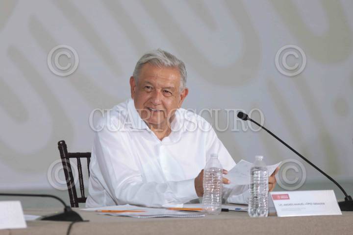 SANTA MARÍA HUATULCO, OAXACA, 09JUNIO2022.- Andrés Manuel López Obrador, Presidente Constitucional de los Estados Unidos Mexicanos, presidió el Plan de Apoyo a las personas afectadas por el Huracán Agatha en Oaxaca. Lo acompañan Germán Arturo Martínez Santoyo, director general de la Comisión Nacional del Agua; Laura Velázquez Alzúa, coordinadora nacional de Protección Civil; Jorge Arganis Díaz Leal, secretario de Infraestructura, Comunicaciones y Transportes; Rosa Icela Rodríguez Velázquez, secretaria de Seguridad y Protección Ciudadana; Adán Augusto López Hernández, secretario de Gobernación; Alejandro Murat Hinojosa, gobernador Constitucional del Estado de Oaxaca; Luis Cresencio Sandoval González, secretario de la Defensa Nacional; José Rafael Ojeda Durán, secretario de Marina; Ariadna Montiel Reyes, secretaria de Bienestar. FOTO: PRESIDENCIA/CUARTOSCURO.COM