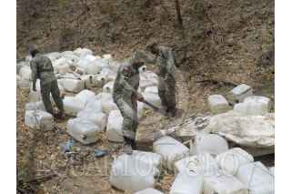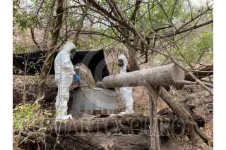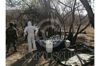 SINALOA, 09JUNIO2022.- La Secretaría de la Defensa Nacional, hace del conocimiento que, el 8 de junio de 2022, en el marco de la Estrategia Nacional de Seguridad Pública y la Política de Cero Impunidad del Gobierno Federal, personal del Ejército Mexicano realizó el aseguramiento de siete laboratorios clandestinos, para la elaboración de droga sintética en los municipios de Cosalá y Badiraguato. Derivado de la planeación y los trabajos de inteligencia para detectar organizaciones criminales con presencia en esa entidad, dedicadas a la fabricación de drogas sintéticas, el Ejército Mexicano desplegó fuerzas de reacción a inmediaciones de los poblados de El Limón, El Mautal, La Bacata, La Carbonera y Alcoyonqui, así como en Los Cedritos de referidos municipios, con la finalidad de localizar laboratorios clandestinos. Al arribar a las áreas indicadas, el personal militar estableció el perímetro de seguridad confirmando la información y procediendo a la inhabilitación de 7 laboratorios clandestinos. FOTO: SEDENA/CUARTOSCURO.COM
