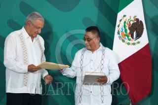 SANTA MARÍA HUATULCO, OAXACA, 10JUNIO2022.- Andrés Manuel López Obrador, presidente de México, ofreció conferencia de prensa desde Oaxaca. Lo acompañaron: Alejandro Murat Hinojosa, gobernador de Oaxaca; Adán Augusto López Hernández, secretario de Gobernación; Rosa Icela Rodríguez Velázquez, secretaria de Seguridad y Protección Ciudadana; Luis Cresencio Sandoval Gónzalez, secretario de la Defensa Nacional; Rafael Ojeda Duran, secretario de Marina; Luis Rodríguez Bucio, comandante de la Guardia Nacional; Jesús Galván Rojas, presidente municipal de San Pedro y San Pablo Ayutla y Rafael Juárez Martínez, presidente municipal de Tamazulápam del Espíritu Santo. FOTO-: PRESIDENCIA/CUARTOSCURO.COM
