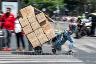 CIUDAD DE MÉXICO, 10JUNIO2022.- Un comerciante traslada su mercancía en un diablito sobre eje central y avenida Juárez. FOTO: MARIO JASSO/ CUARTOSCURO.COM