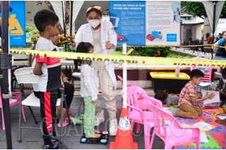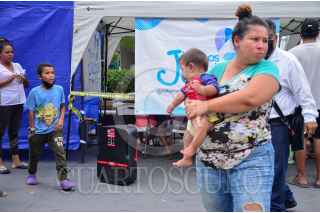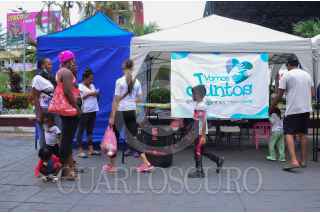 TAPACHULA, CHIAPAS, 10UNIO2022.- La asociación Vamos Juntos instaló un módulo de atención a niños migrantes en el parque Miguel Hidalgo. Migrantes que se encuentran varados en el parque Miguel Hidalgo acuden las citas medicas gratis que brindan la A.C, es un promedio de 60 niños son revisados por el personal médico. FOTO: DAMIÁN SÁNCHEZ/CUARTOSCURO.COM
