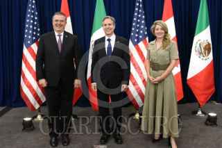 LOS ÁNGELES, ESTADOS UNIDOS, 10JUNIO2022.- Marcelo Ebrard, secretario de Relaciones Exteriores, se reunió con Antony Blinken, secretario de estado de los Estados Unidos, y Mélanie Joly, ministra de Asuntos Generales de Cánada, durante la novena Cumbre de las Américas. FOTO: SRE/CUARTOSCURO.COM