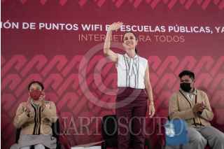 CIUDAD DE MÉXICO, 09JUNIO2022.- Claudia Sheinbaum. jefa de Gobierno, encabezó el evento protocolario de la intervención integral del Programa "Mejor Escuela" en la escuela secundaria técnica número 78 en Azcapotzalco en donde los estudiantes podrán contar con internet gratuito. FOTO: GOBIERNO DE LA CIUDAD DE MÉXICO/CUARTOSCURO.COM