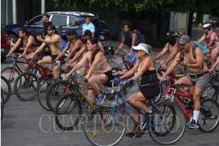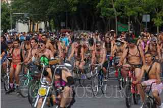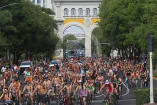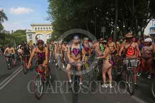 GUADALAJARA, JALISCO, 11JUNIO2022.- Este sábado se llevo a cabo la edición numero 11 del World Naked Bike Ride o Rodada Nudista, a la que asistieron decenas de ciclistas para protestar por visibilizar al peatón, al ciclista y exhibir su vulnerabilidad al circular por las calles junto a los automovilistas, dicha rodada inicio su recorrido en el parque Clemente Orozco y concluyo en la Glorieta de los Desaparecidos. FOTO: FERNANDO CARRANZA GARCIA / CUARTOSCURO.COM