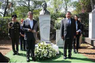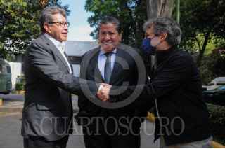 CIUDAD DE MÉXICO, 12JUNIO2022.- David Monreal, gobernador del estado de Zacatecas, acompañado por el coordinador de la Jucopo en el Senado de la República, David Monreal, asistieron al panteón Civíl Dolores para colocar una ofrenda floral en la tumba del poeta Ramón López Velarde y dar así inicio a las jornadas Lopezverderianas en su 25 edición. FOTO : DANIEL AUGUSTO /CUARTOSCURO.COM