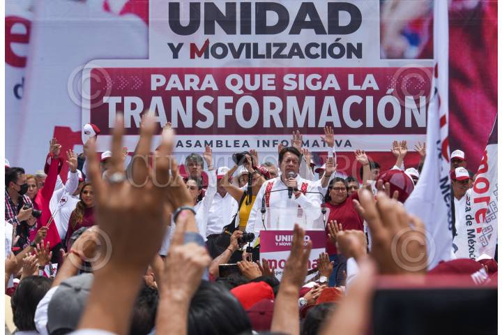 TOLUCA, ESTADO DE MÉXICO, 12JUNIO2022.- Este domingo MORENA llevó a cabo el evento “Unidad y Movilización para que siga la Transformación” con la participación de las llamadas “corcholatas” para el 2023 y 2024, desde las figuras que buscarán suceder a AMLO como Claudia Sheinbaum, Jefa de Gobierno de la CDMX, Marcelo Ebrard, Secretario de Relaciones Exteriores, Adán Augusto López, Secretario de Gobernación y los posibles candidatos para competir por la gubernatura del Estado de México, Higinio Martínez, Senador, Delfina Gómez, Secretaría se Educación Publica y Horacio Duarte, titular de la Agencia Nacional de Aduanas de México (ANAM); el evento se llevó a cabo en la explanada del Teatro Morelos y estuvo encabezado por Mario Delgado Presidente de MOREMA, en donde la militancia inicia los preparativos para las elecciones del 2023 y 2024. FOTO: CRISANTA ESPINOSA AGUILAR /CUARTOSCURO.COM