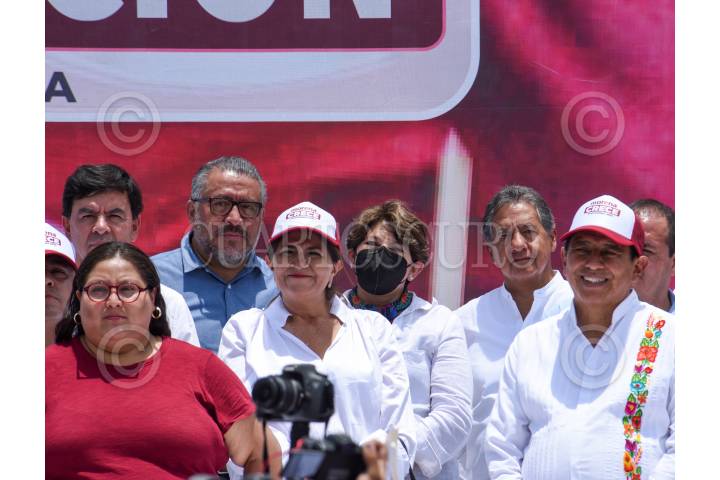 TOLUCA, ESTADO DE MÉXICO, 12JUNIO2022.- Este domingo MORENA llevó a cabo el evento “Unidad y Movilización para que siga la Transformación” con la participación de las llamadas “corcholatas” para el 2023 y 2024, desde las figuras que buscarán suceder a AMLO como Claudia Sheinbaum, Jefa de Gobierno de la CDMX, Marcelo Ebrard, Secretario de Relaciones Exteriores, Adán Augusto López, Secretario de Gobernación y los posibles candidatos para competir por la gubernatura del Estado de México, Higinio Martínez, Senador, Delfina Gómez, Secretaría se Educación Publica y Horacio Duarte, titular de la Agencia Nacional de Aduanas de México (ANAM); el evento se llevó a cabo en la explanada del Teatro Morelos y estuvo encabezado por Mario Delgado Presidente de MOREMA, en donde la militancia inicia los preparativos para las elecciones del 2023 y 2024. FOTO: CRISANTA ESPINOSA AGUILAR /CUARTOSCURO.COM
