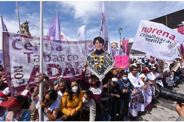 TOLUCA, ESTADO DE MÉXICO, 12JUNIO2022.- Este domingo MORENA llevó a cabo el evento “Unidad y Movilización para que siga la Transformación” con la participación de las llamadas “corcholatas” para el 2023 y 2024, desde las figuras que buscarán suceder a AMLO como Claudia Sheinbaum, Jefa de Gobierno de la CDMX, Marcelo Ebrard, Secretario de Relaciones Exteriores, Adán Augusto López, Secretario de Gobernación y los posibles candidatos para competir por la gubernatura del Estado de México, Higinio Martínez, Senador, Delfina Gómez, Secretaría se Educación Publica y Horacio Duarte, titular de la Agencia Nacional de Aduanas de México (ANAM); el evento se llevó a cabo en la explanada del Teatro Morelos y estuvo encabezado por Mario Delgado Presidente de MOREMA, en donde la militancia inicia los preparativos para las elecciones del 2023 y 2024. FOTO: CRISANTA ESPINOSA AGUILAR /CUARTOSCURO.COM