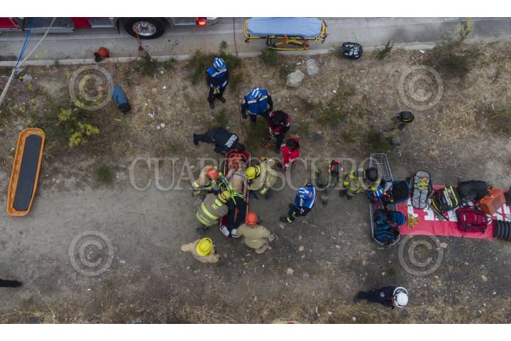 TIJUANA BAJA CALIFORNIA, 12JUNIO2022.-Aparatoso accidente se registró sobre la avenida internacional en dirección a Playas de Tijuana, a la altura del canon del “Matadero“. Un automóvil cayó desde una altura de cien metros aproximadamente, una persona se dio a la fuga y otra mas quedó inconsciente en el lugar. Al lugar acudieron elementos de rescate de Medik 2000, bomberos y cruz roja para dar la atención correspondiente. Además elementos del Ejército Mexicano acudieron al lugar para asegurar el lugar. El automóvil quedó completamente calcinado en el fondo del barranco. FOTO: OMAR MARTÍNEZ /CUARTOSCURO.COM
