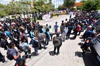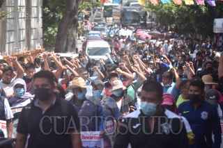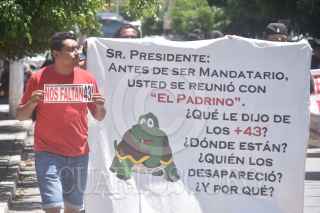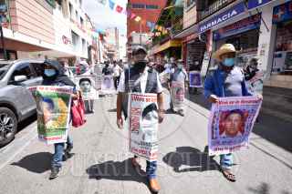 CHILPANCINGO, GUERRERO, 12JUNIO2022.- Con una marcha en la capital del estado, Padres de los 43, normalistas rurales de diferentes partes del país, profesores disidentes y organizaciones sociales culminaron la primera semana de la jornada de lucha '26 de septiembre no se olvida', a partir de este lunes, sus manifestaciones las realizaran en la capital del pais. Con esta marcha que culminó con un mitin en el antimonumento en memoria de los 43 ubicado en la Glorieta de las Banderas dieron por terminadas sus actividades de protesta en Guerrero, y se trasladan a la Ciudad de México en exigencia de una reunión con el presidente de la República, Andrés Manuel López Obrador. En el mitin reiteraron que las demandas centrales son que el Ejército Mexicano entregue la información que le ha sido solicitada por el Grupo Interdisciplinario de Expertos Independientes (GIEI) respecto a lo ocurrido la noche del 26 y madrugada del 27 de septiembre de 2014 en Iguala. Pedirán al presidente, que se investigue a mandos del Ejército que tengan responsabilidad en el caso Ayotzinapa, así como a mandos de la Marina Armada de México, que también han ocultado información al respecto. Insistirán en que se abran procesos penales y administrativos en contra de funcionarios del Poder Judicial del Estado que manipularon y desaparecieron los videos del Palacio de Justicia de Iguala, entonces encabezado por Lambertina Galeana Marín. FOTO: DASSAEV TÉLLEZ ADAME/CUARTOSCURO.COM