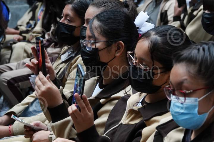 CIUDAD DE MÉXICO, 14JUNIO2022.- Claudia Sheinbaum, jefa de Gobierno; Luis Humberto Fernández, titular de la Autoridad Educativa Federal en la Ciudad de México; José Antonio Peña Medina, titular de la Agencia Digital e Innovación Pública de la Ciudad de México, y Yahaira Gamiochipi, directora de la Escuela Secundaria Técnica #63 “Melchor Ocampo”, encabezaron una visita en esta escuela para informar que se contará con antenas para que haya internet gratuito. FOTO: GRACIELA LÓPEZ /CUARTOSCURO.COM