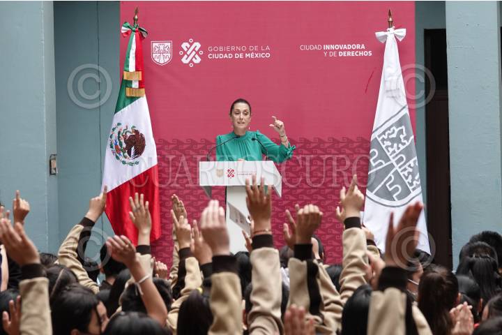 CIUDAD DE MÉXICO, 14JUNIO2022.- Claudia Sheinbaum, jefa de Gobierno; Luis Humberto Fernández, titular de la Autoridad Educativa Federal en la Ciudad de México; José Antonio Peña Medina, titular de la Agencia Digital e Innovación Pública de la Ciudad de México, y Yahaira Gamiochipi, directora de la Escuela Secundaria Técnica #63 “Melchor Ocampo”, encabezaron una visita en esta escuela para informar que se contará con antenas para que haya internet gratuito. FOTO: GRACIELA LÓPEZ /CUARTOSCURO.COM