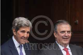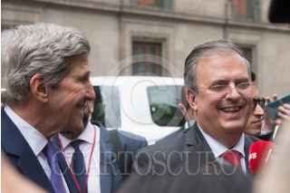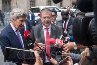 CIUDAD DE MÉXICO, 14JUNIO2022.- John Kerry, enviado especial de Estados Unidos para el clima, en compañía de Marcelo Ebrard, secretario de Relaciones Exteriores, al termino de la reunión en Palacio Nacional con Andrés Manuel López Obrador, presidente de México. FOTO: MARIO JASSO/CUARTOSCURO.COM