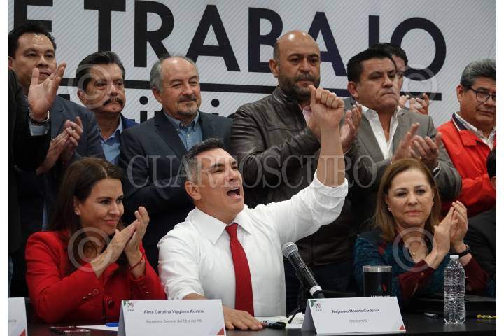 CIUDAD DE MÉXICO, 14JUNIO2022.- Alejandro Moreno Cárdenas, presidente nacional del Partido Revolucionario Institucional (PRI), ofreció conferencia de prensa tras reunirse con nueve ex presidente del partido en que se reflexionó los resultados de las pasadas elecciones, así como el futuro del partido. Aunque se presentía una renuncia por parte de Moreno Cárdenas, este afirmó que permanecerá al frente del partido pues fue elegido por la militancia y cumplirá con los tiempos que en los estatutos están marcados. FOTO: GALO CAÑAS/CUARTOSCURO.COM