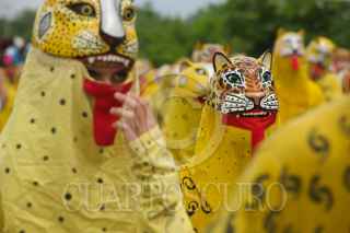 SUCHIAPA, CHIAPAS, 14JUNIO2022.- Una de las festividades más representativas del municipio es la de Corpus Cristi, celebrada a mediados del mes de junio, donde se dan cita miles de personas originarias y creyentes a esta creencia del “Santísimo Sacramento”, celebrada decenas de años atrás. Durante las fiestas, se realiza la danza del Calalá que simbolizan a los tigres, y otros personajes danzan acompañando a los tigres; los Chamulas, el gigante, el venado y la representación de Quetzalcóatl. FOTO: ISABEL MATEOS /CUARTOSCURO.COM