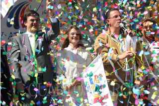 MÉXICO, D.F. 06ENERO2006.- Marcelo Ebrard, jefe de gobierno capitalino y Jorge Garralda dieron el banderazo de salida a las carabana que transportará los juguetes para niños de diferentes casas hogar y hospitales. Magriana Pratz estuvo presente FOTO: PAOLA HIDALGO/CUARTOSCURO.COM