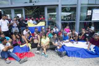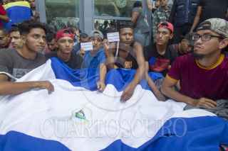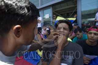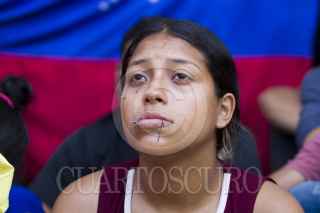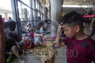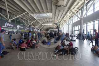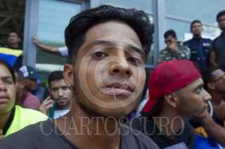 MONTERREY, NUEVO LEÓN, 15JUNIO2022.- Decenas de migrantes procedentes de Venezuela, Nicaragua y Guatemala, cosieron sus labios en forma de protesta al quedarse varados en la central de autobuses de Monterrey. Los migrantes tienen su pasaje pagado hasta Ciudad Acuña, Coahuila, sin embargo el Instituto Nacional de Migración no los deja continuar su viaje y tampoco han recibido un reembolso por sus boletos. A Monterrey han arribado al menos dos mil migrantes que viajaron en caravana desde Chiapas. FOTO: GABRIELA PÉREZ MONTIEL / CUARTOSCURO.COM