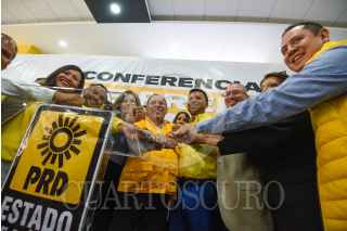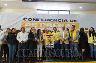 TOLUCA, ESTADO DE MÉXICO, 15JUNIO202.- Jesús Zambrano, dirigente nacional del PRD, acompañado por integrantes del Partido del Sol Azteca en el Estado de México, en conferencia de prensa afirmó que el Edoméx nadie debe darse ganado de antemano, los Morenistas con su evento del pasado domingo echaron mano de la ostentosidad violando la ley y sin esperar los plazos, afirma que tienen fuerza política y buscarán tener Candido propio y no descartan una coalición para disputar y ganar las elecciones en el 2023 , así como en los próximos días será integrada la Comisión Política en la que se determinará el proceso para la selección de su propia candidatura para el 2024. FOTO: CRISANTA ESPINOSA AGUILAR /CUARTOSCURO.COM
