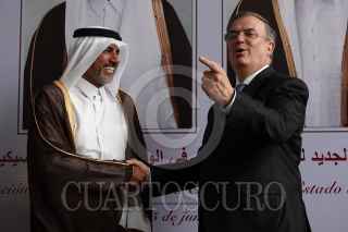 CIUDAD DE MÉXICO, 15JUNIO2022.- Marcelo Ebrard, secretario de Relaciones Exteriores, y Mohammed Alkuwari, embajador de Qatar en México, encabezaron la inauguración de la nueve sede de la embarra de Qatar en México. El canciller declaró que siguen trabajando de manera conjunta para generar lazos comerciales fuertes, así como una conexión de vuelos con el país árabe. FOTO: GALO CAÑAS/CUARTOSCURO.COM