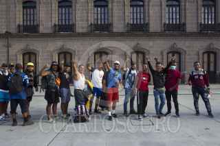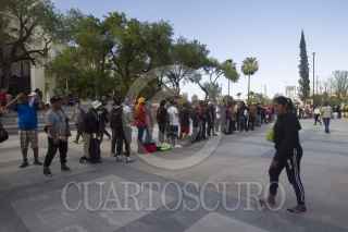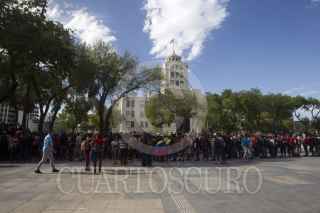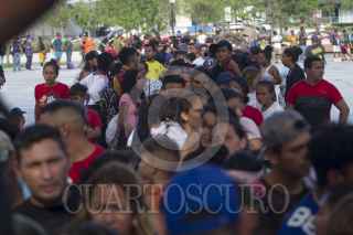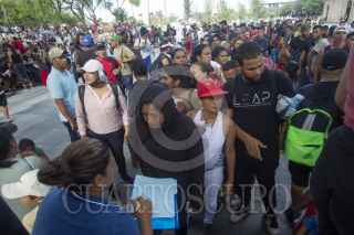 MONTERREY, NUEVO LEÓN, 15JUNIO2022.- Cientos de migrantes que quedaron varados en la central de autobuses, caminaron hacia el Palacio de Gobierno para exigir que puedan seguir su camino. Se espera que autobuses arriben al lugar para llevarlos hacia las ciudades fronterizas de Piedras Negras y Ciudad Acuña, Coahuila. FOTO: GABRIELA PÉREZ MONTIEL / CUARTOSCURO.COM