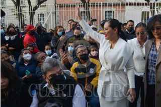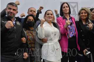 CIUDAD DE MÉXICO, 16JUNIO2022.- Sandra Cuevas, alcaldesa de Cuauhtémoc, en compañía de los alcaldes: Mauricio Tabe (Miguel Hidalgo); Lía Limón (Álvaro Obregón), Santiago Taboada (Benito Juárez), y Margarita Zaldaña,(Azcapotzalco), ofreció un discurso para informar sobre su posicionamiento respecto al Deportivo Guelatao. En el evento también estuvieron presentes los Presidentes de los Partidos Políticos: Nora Arias (PRD) , Andrés Atayde (PAN), e Israel Betanzos Cortés (PRI). FOTO: MARIO JASSO/CUARTOSCURO.COM