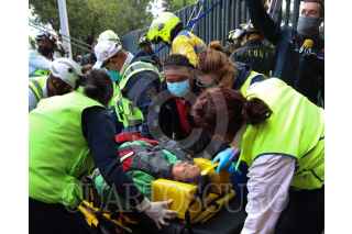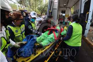 CIUDAD DE MÉXICO, 16JUNIO2022.- Paramédicos atendieron a una mujer cayó a una coladera que faltaba la tapa en la banqueta de la Calle 608 y 508 en la colonia San Juan de Aragón. FOTO: ROGELIO MORALES /CUARTOSCURO.COM