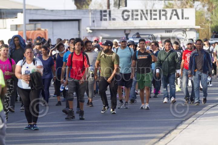 MONTERREY, NUEVO LEÓN, 16JUNIO2022.- Cientos de migrantes que habían quedado varados en la central de autobuses de Monterrey, emprendieron una marcha hacia Saltillo, Coahuila, escoltados por patrullas de Fuerza Civil con la convicción de llegar a la frontera con Estados Unidos. FOTO: GABRIELA PÉREZ MONTIEL / CUARTOSCURO.COM