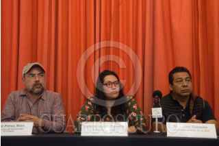 CIUDAD DE MÉXICO, 17JUNIO2022.- Leticia López Zamora, secretaria General del Instituto de Educación Media Superior (SUTIEMS); Raúl Pérez Rios, secretario de Relaciones Externas de SUTIEMS, y Gamaliel Guzmán, secretario General de la Coordinadora Nacional de Trabajadores de la Educación (CNTE) Sección XVIII, ofrecieron conferencia de prensa en el Centro Nacional de Comunicación Social (Cencos) para informar sobre los resultados del "Foro de Solidaridad con los Sindicatos y Trabajadores en Lucha" por una solución a sus demandas. Los representantes anunciaron una movilización que sería realizada la próxima semana. FOTO: MARIO JASSO/CUARTOSCURO.COM